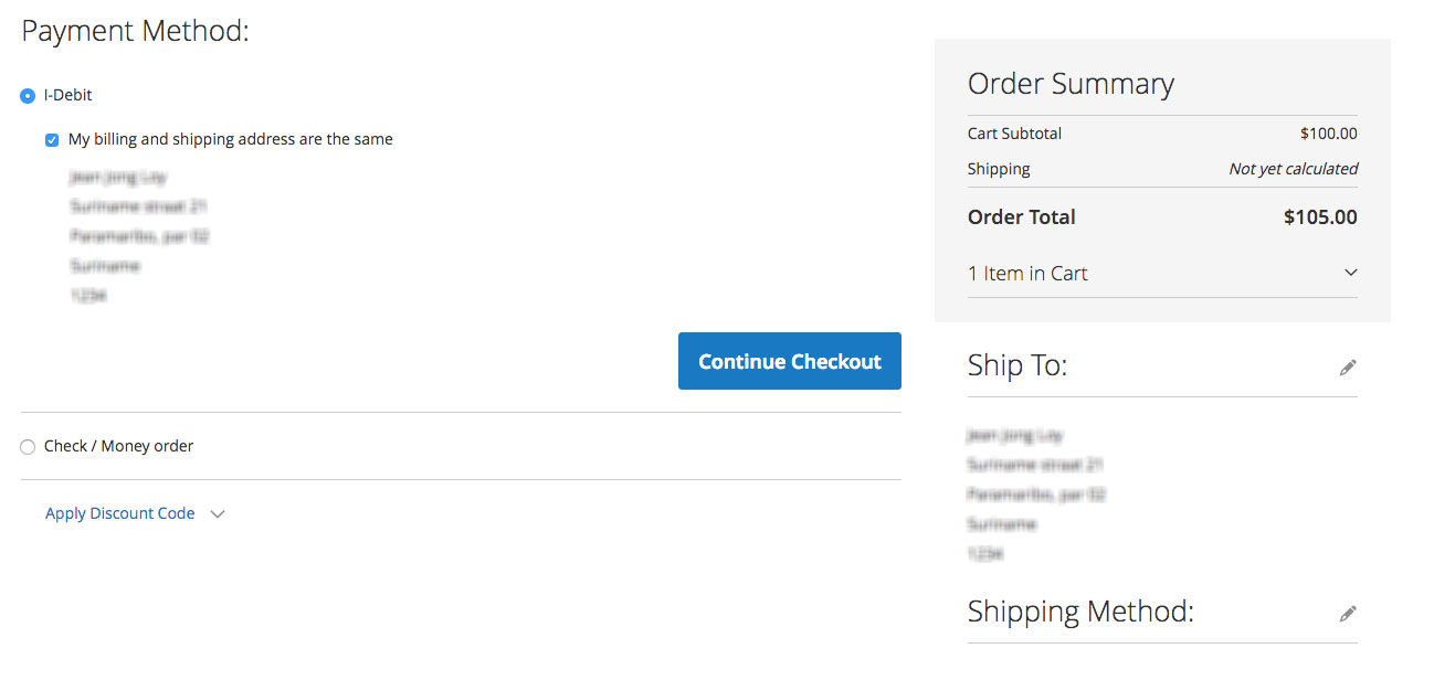 At the checkout process I-Debit (HOP Payment) should be visible