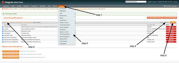 - step 2: Go to Cache management